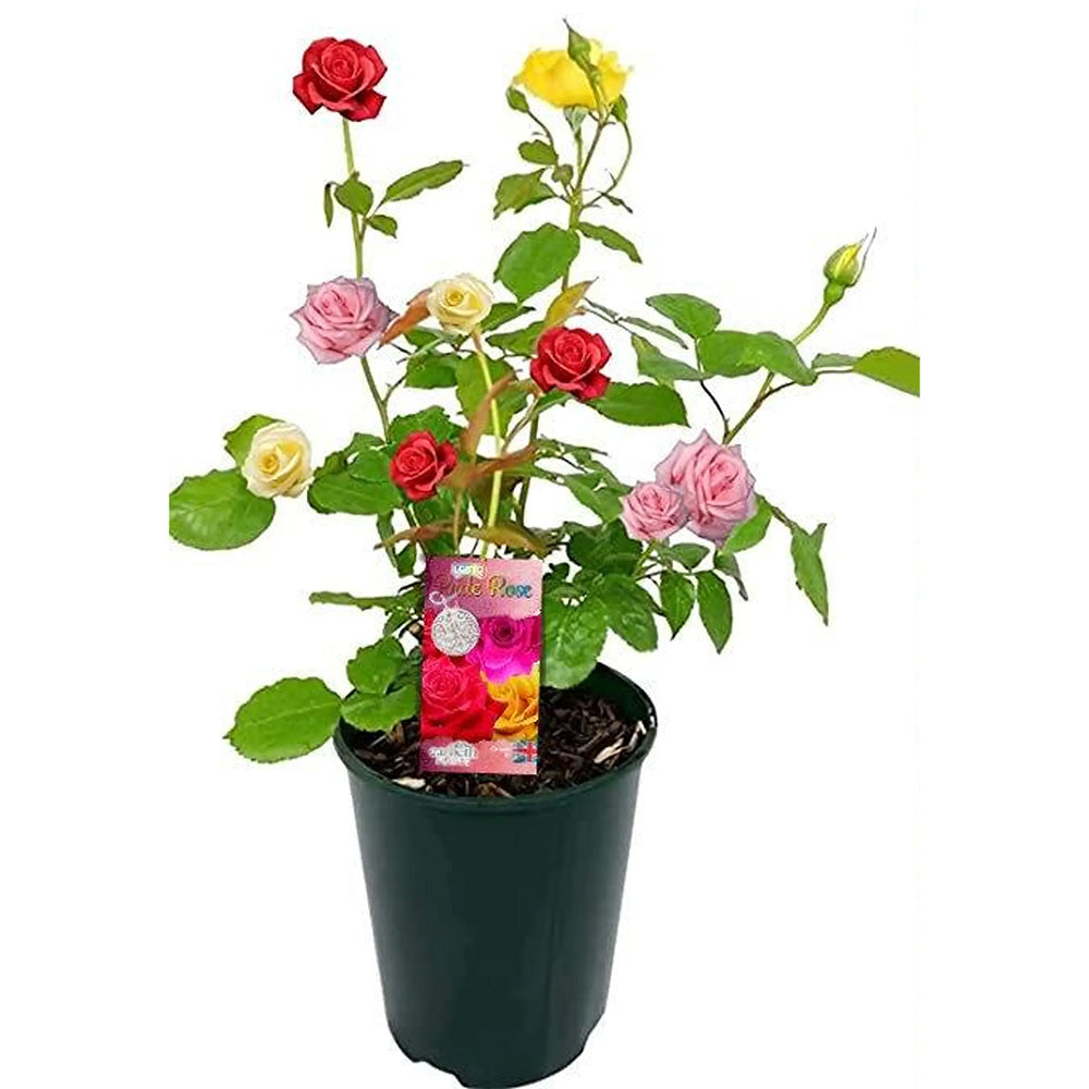 Джуджева трицветна роза Beau Monde, три цвята в саксия, ароматни и декоративни цветове