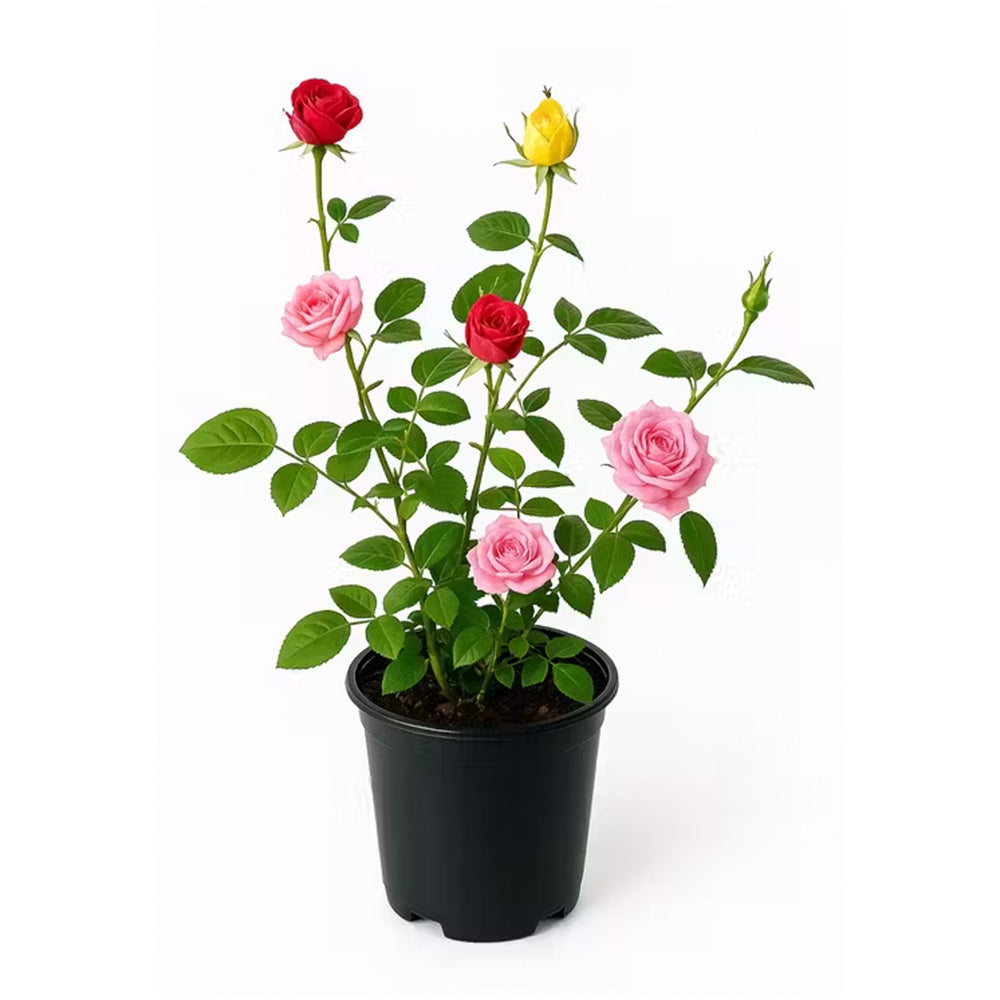 Rosa „Beau Monde Mix” е впечатляващ сорт джудже роза, който носи експлозия от цвят и аромат във всяко пространство — било то балкон, тераса, вътрешен двор или малка градина. Уникалната му особеност е, че три различни цветови разновидности — обикновено бяла, розова и червена — се отглеждат заедно в едно и също саксийно растение, създавайки елегантен и изключително ефектен визуален контраст.