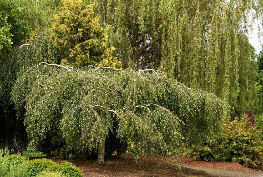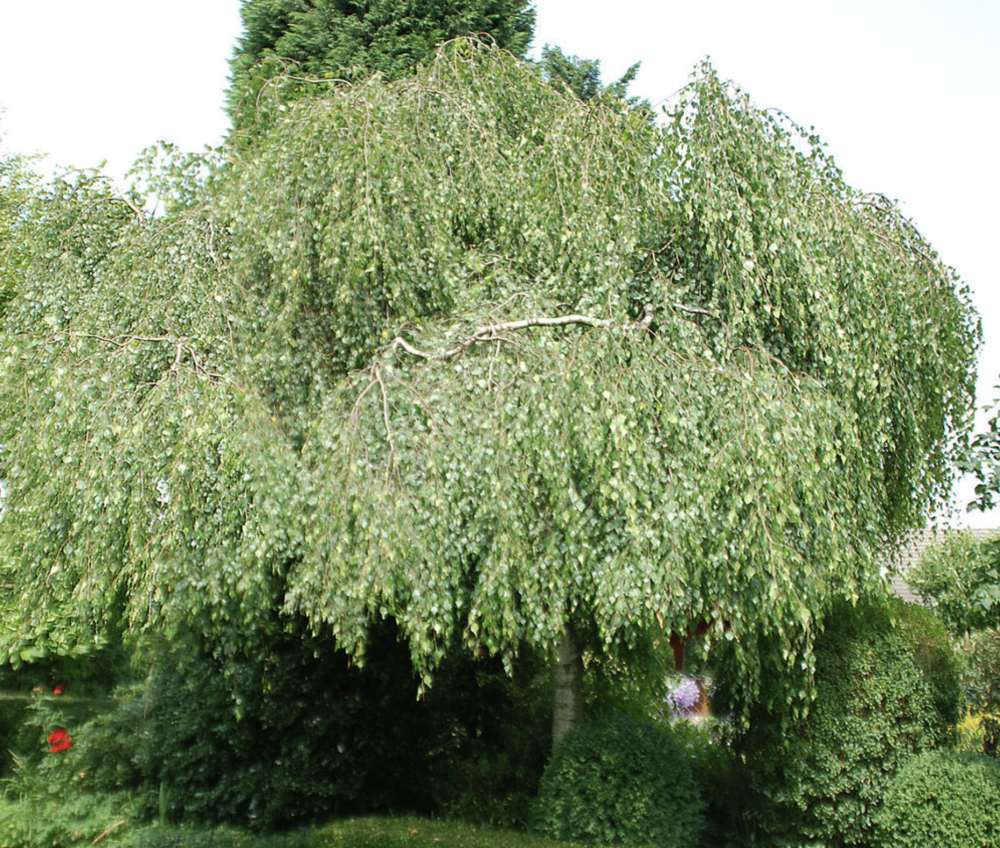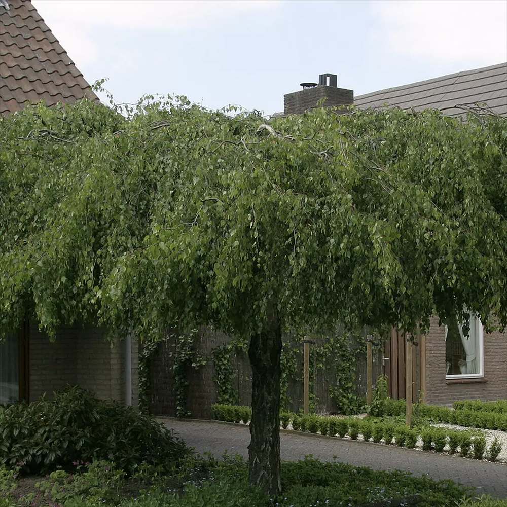 Плачеща бреза Youngii, с висяща корона, подходяща за малки градини