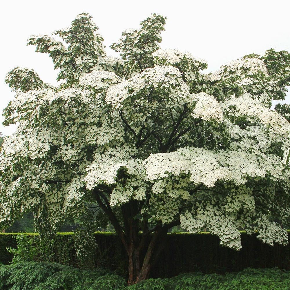 Corn Chinezesc Cornus Kousa Milky Way, arbore pitic ornamental cu flori albe si fructe comestibile, pentru gradini mici