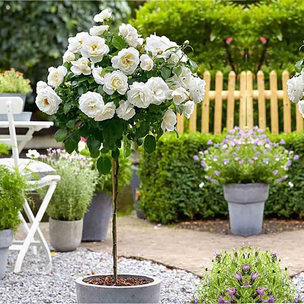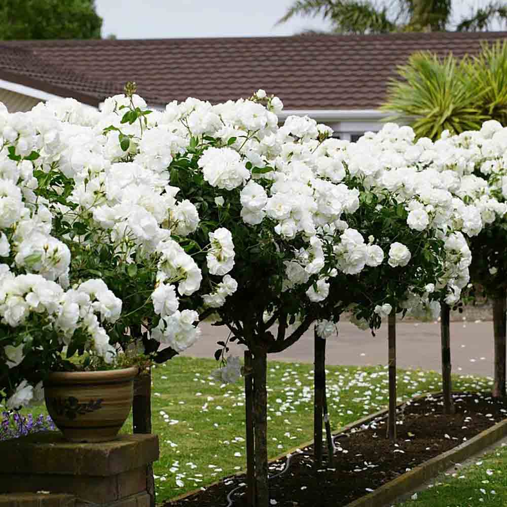Розa дърво бяла Sirius, повтарящ цъфтеж