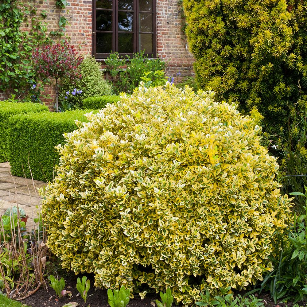 Евонимус японски Emerald 'N' Gold, вечнозелен декоративен храст с жълто-зелени листа