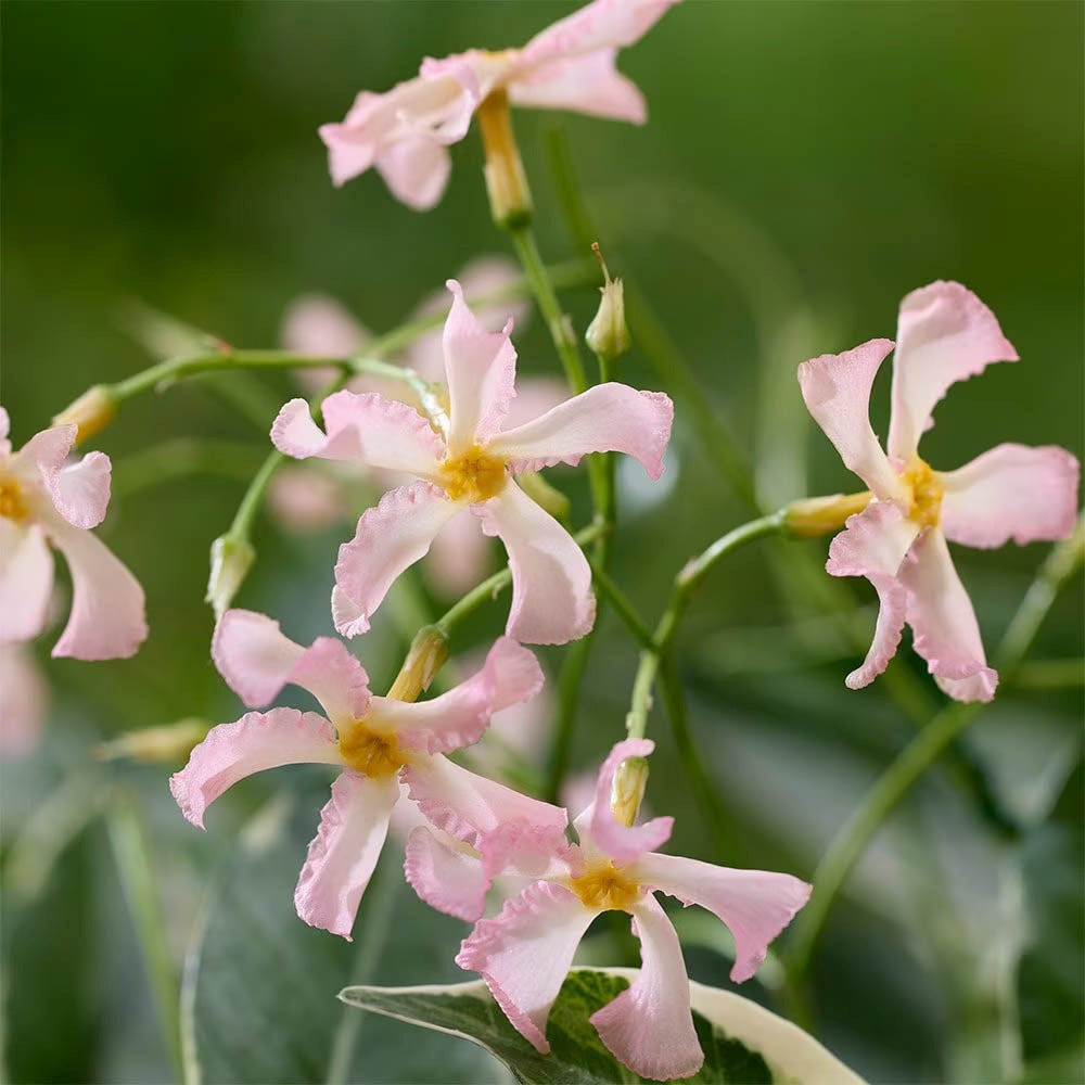 Звезден жасмин Star Of Milano, катерлив, с сьомгено-розови цветове, силно ароматен, вечнозелен, бързорастящ