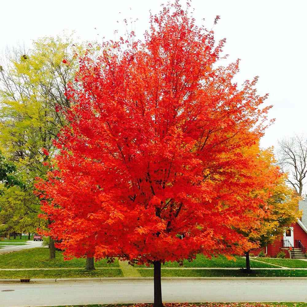 Червен клен Red Sunset, сенчесто дърво с интензивно червени есенни листа, бързорастящо