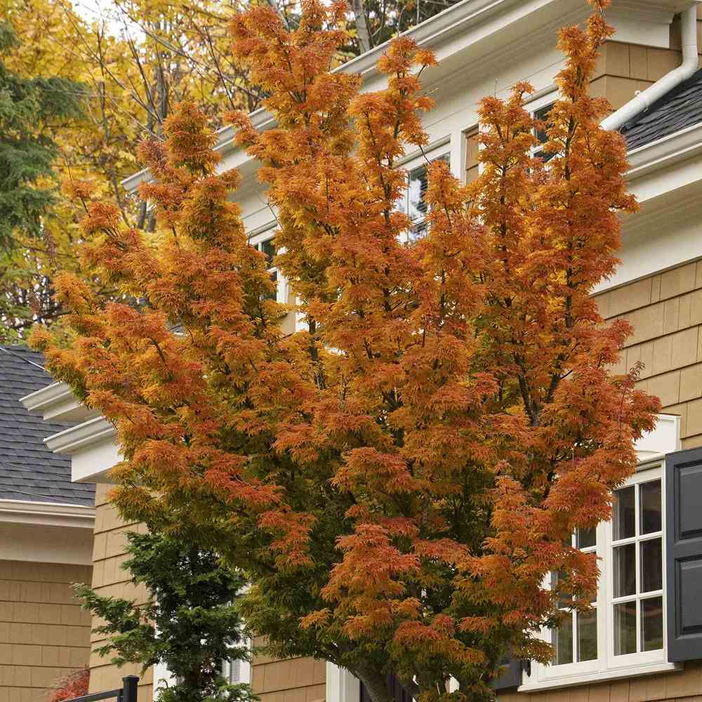 Японски клен Shishigashira, с къдрави компактни листа, яркочервени през есента, студоустойчив до -20°C