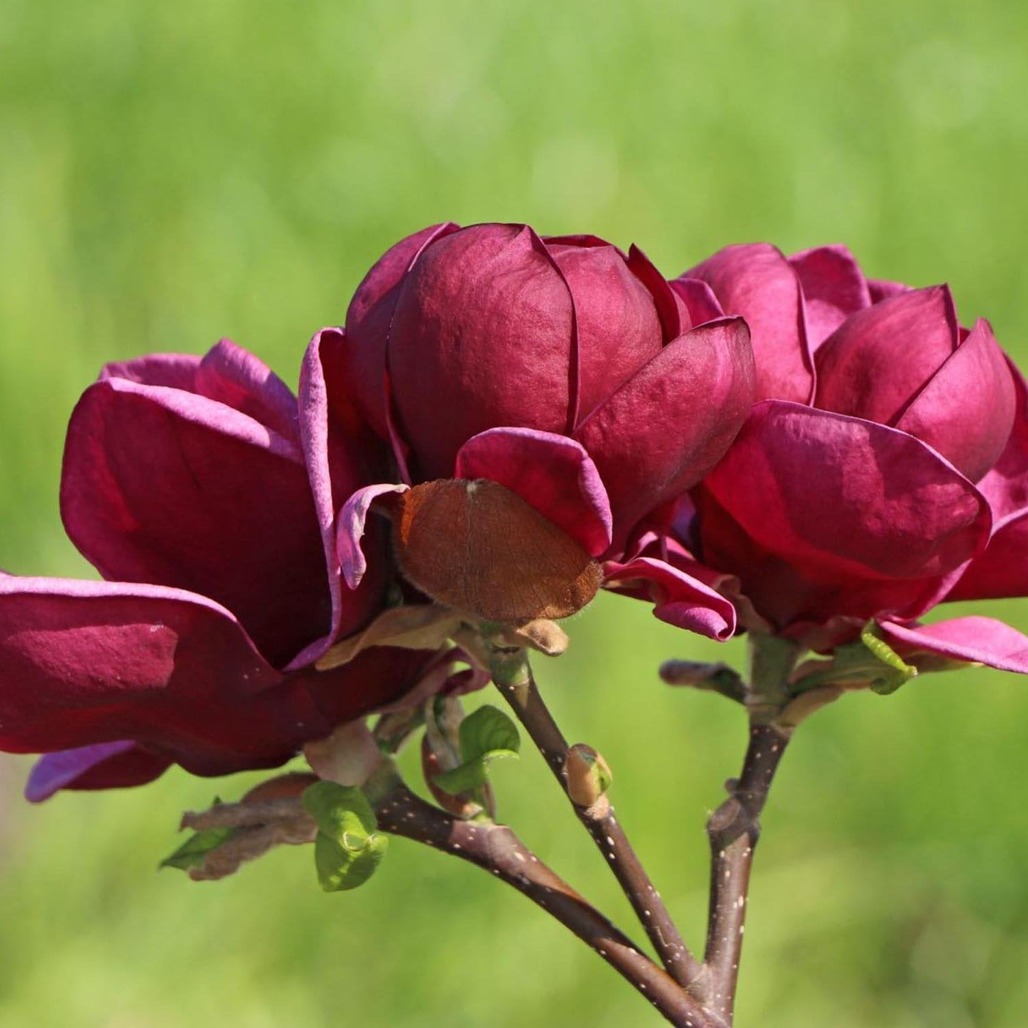 Описание: Magnolia Genie впечатлява със своите наситено бордо цветове с конусовидна форма и мистериозно излъчване. Нейните цветове, като редки бижута, придават елегантност и изисканост на градината, привличайки възхитени погледи. Венчелистчетата са кадифени и блестящи, създавайки очарователен контраст със зелените, ланцетни листа.