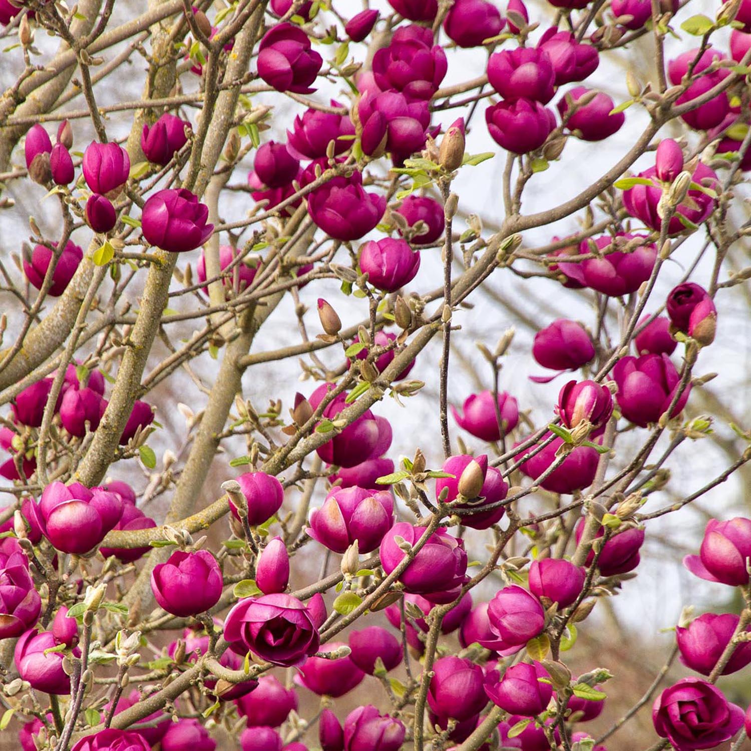 Магнолия Black Tulip, тъмновиолетови цветове като лале, много рядък сорт