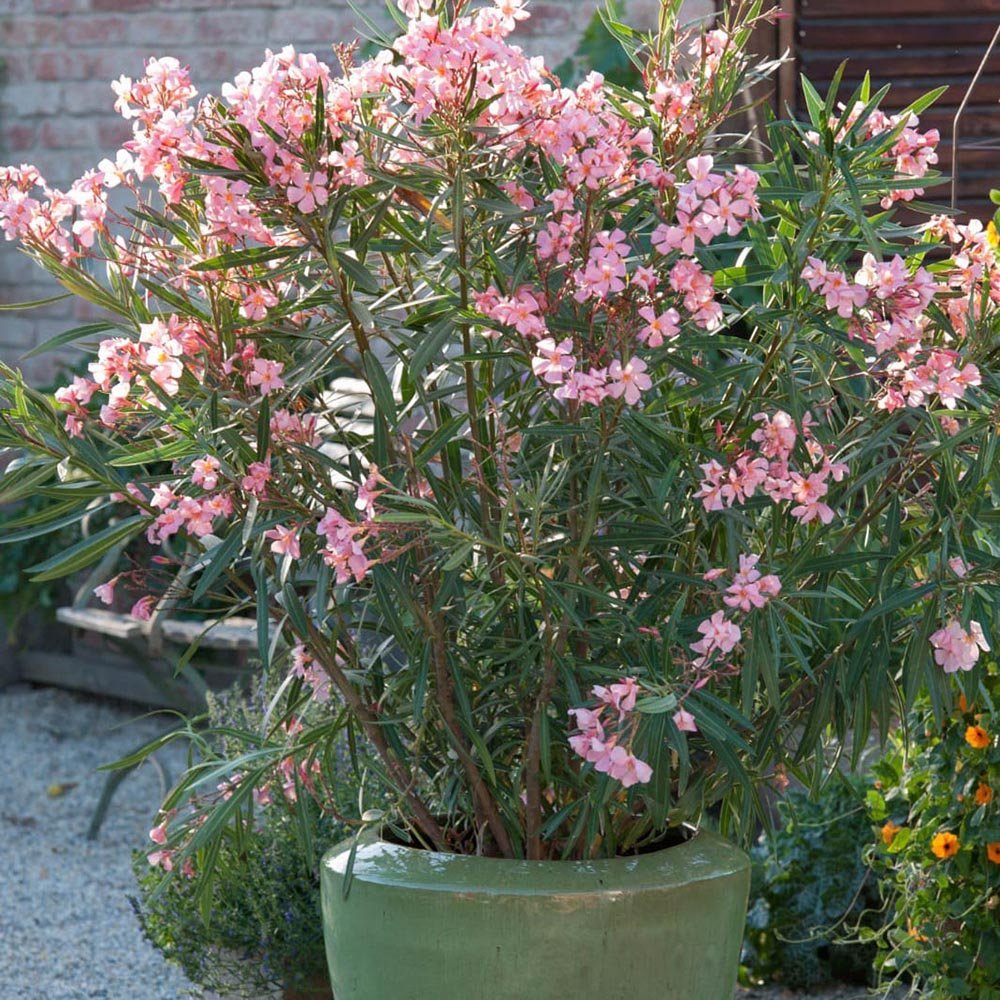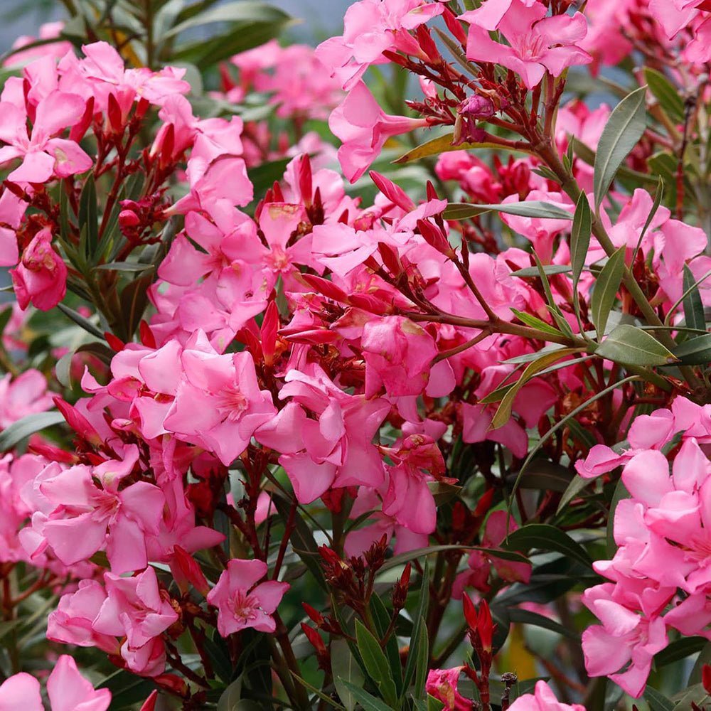 Олеандър (Nerium) храст, с ароматни розови цветове, декоративно растение, привлича пчели, устойчив до -5°C