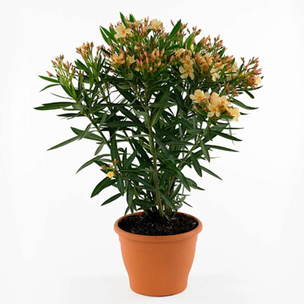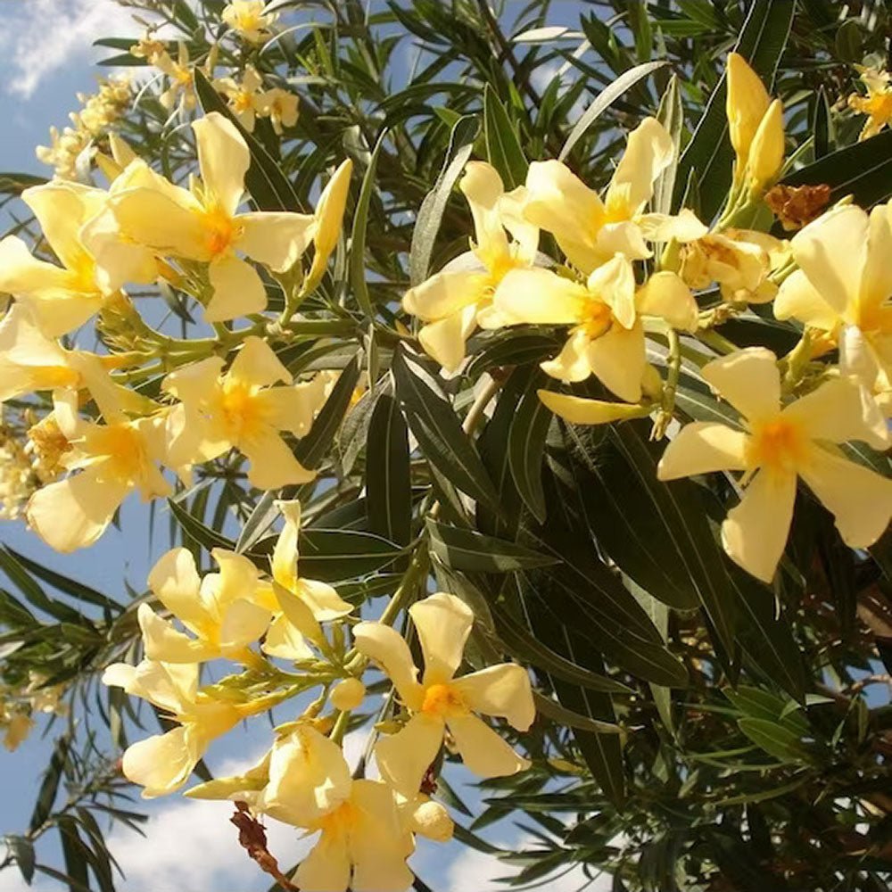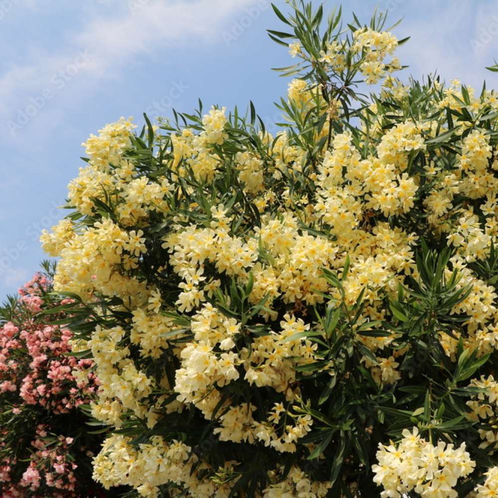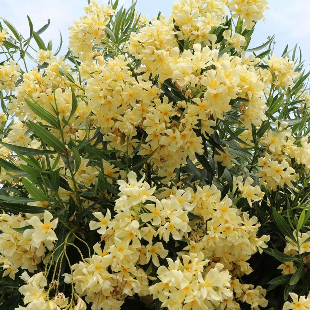 Олеандър (Nerium) храст, с двойни кремаво-жълти цветове