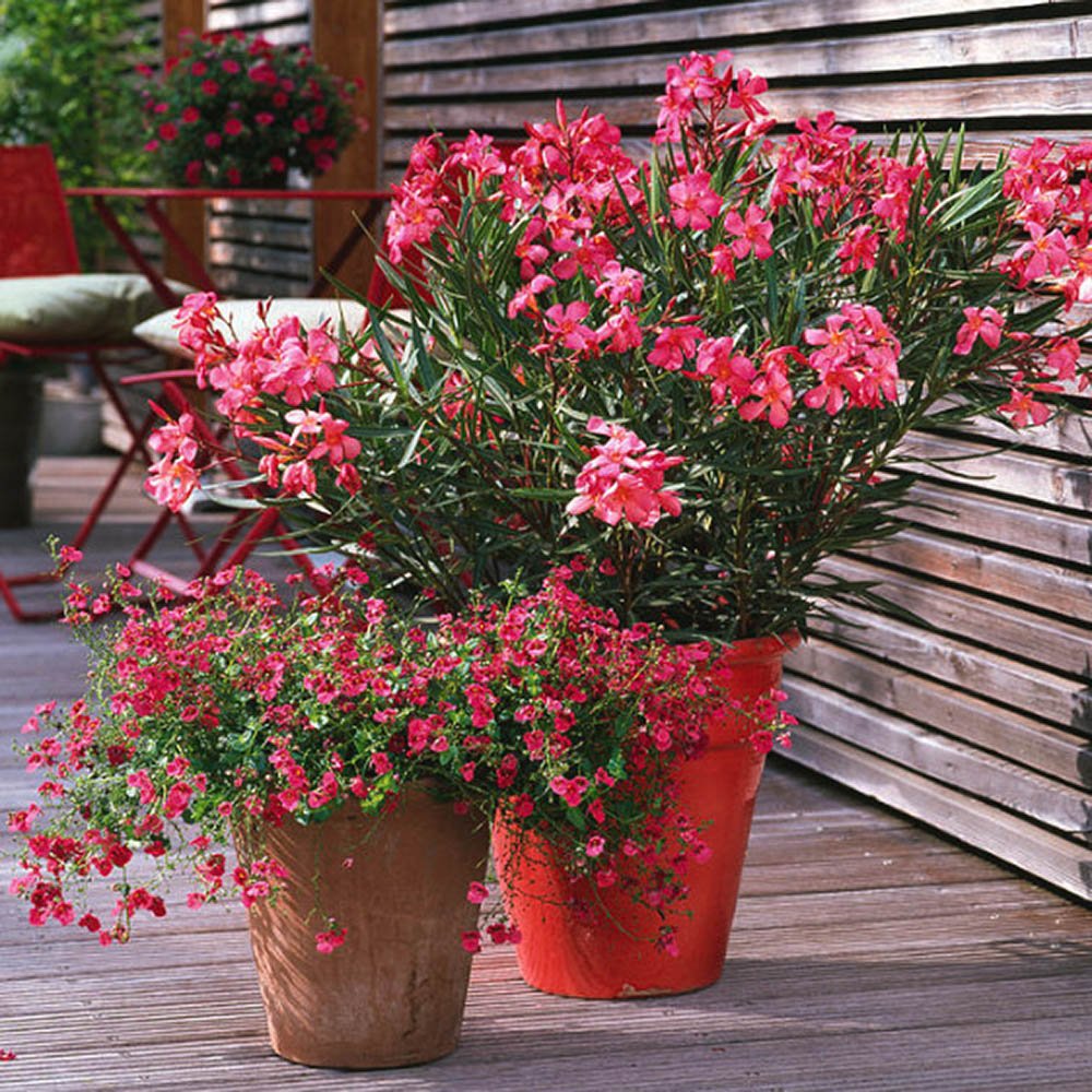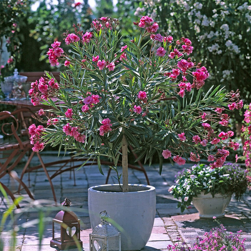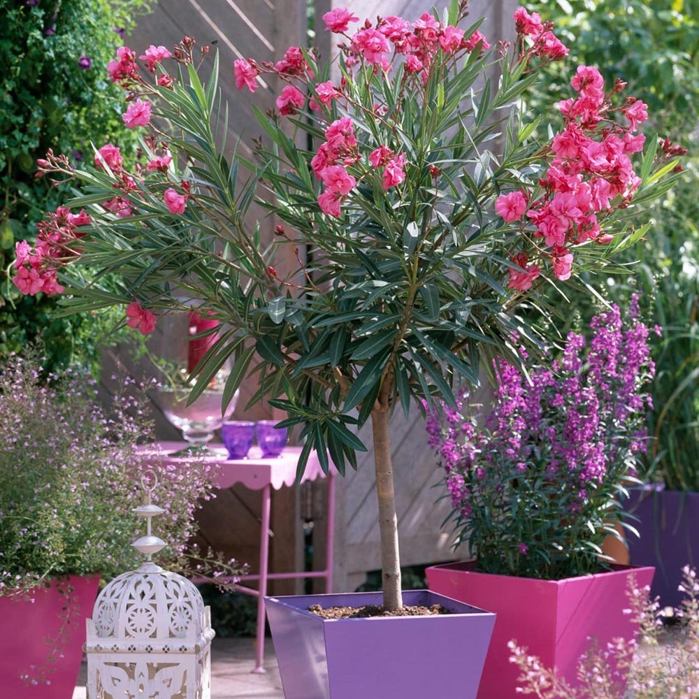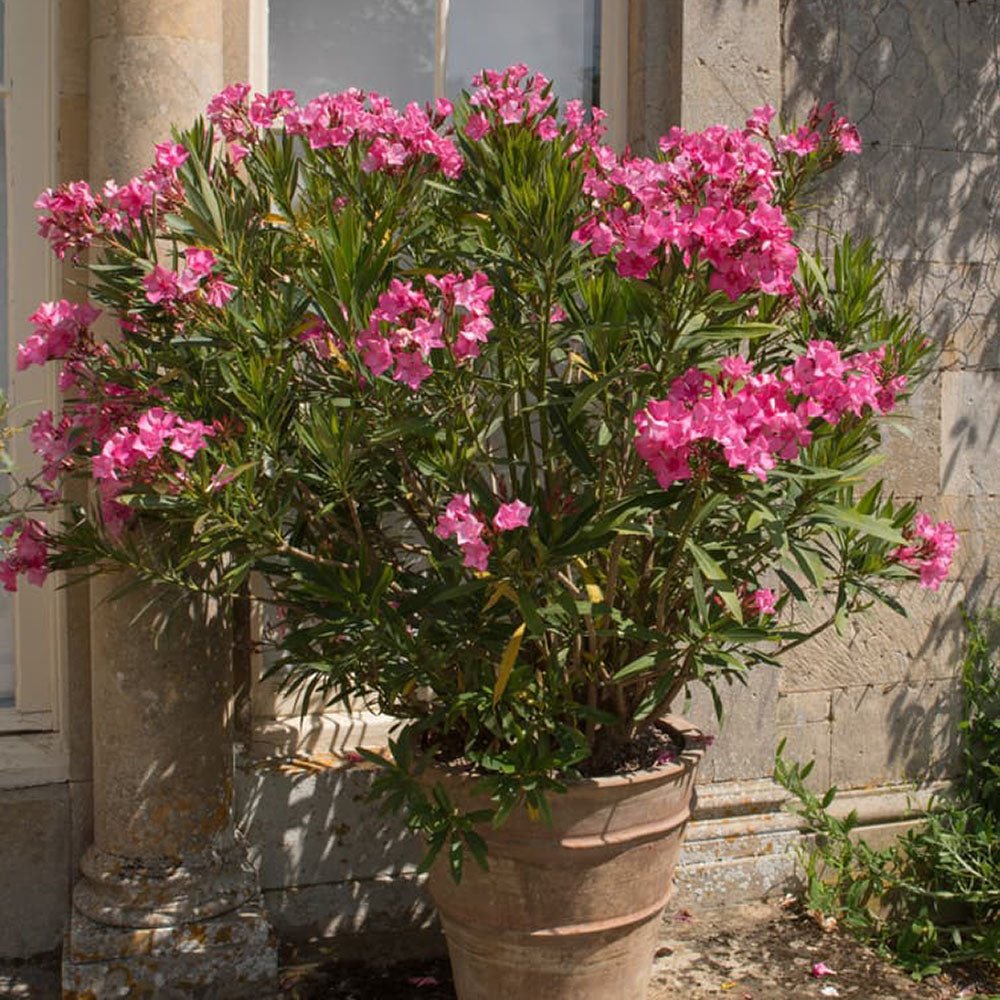 Олеандър (Nerium) храст, с ароматни тъмнорозови цветове, декоративно растение, привлича пчели, устойчив до -5°C