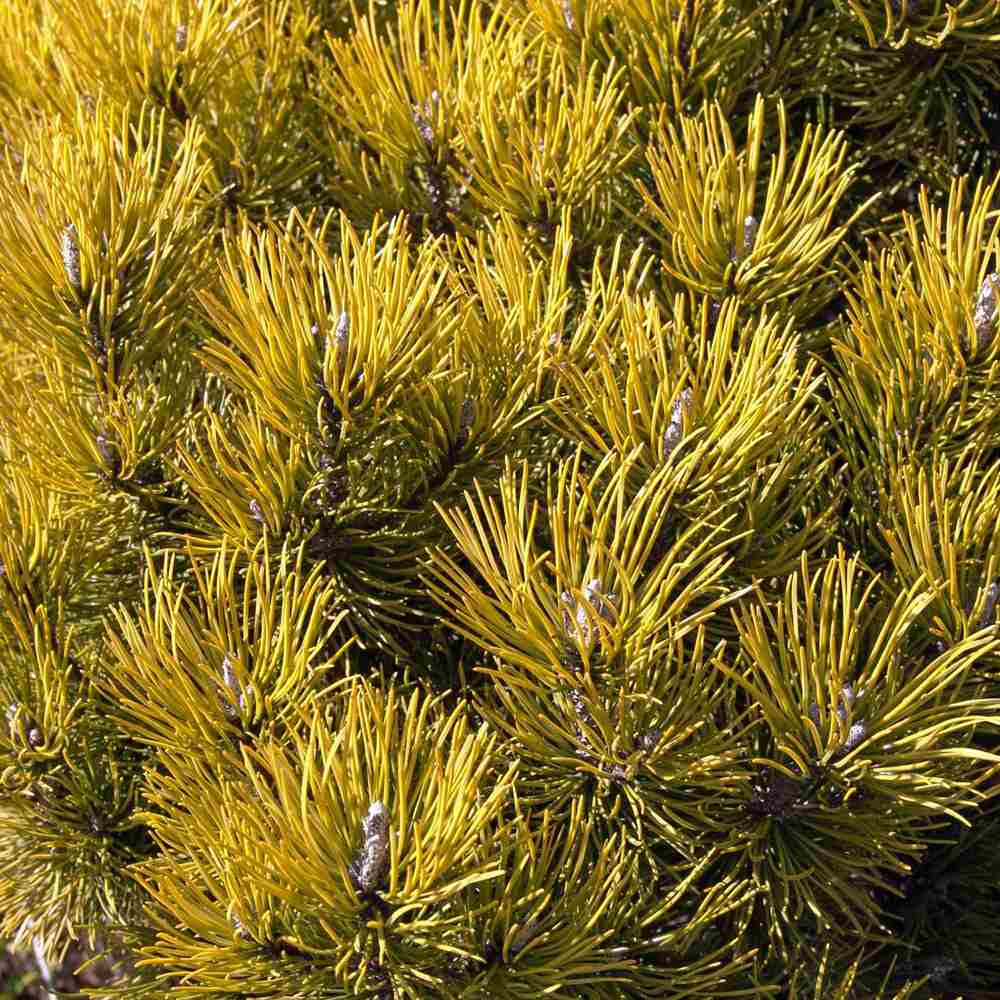 Планински бор джудже (Pinus mugo) Ophir, със златисти игли и компактен растеж
