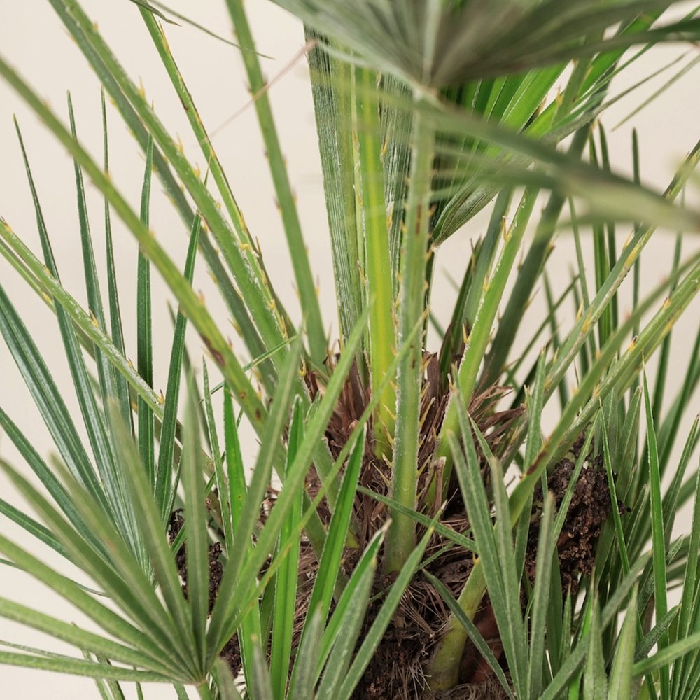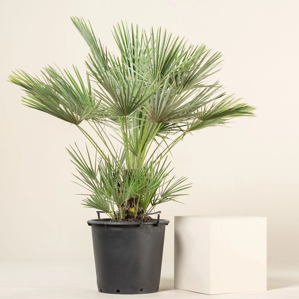 Chamaerops humilis, известна още като Джуджева палма, е изключително устойчива и декоративна средиземноморска палма. Отличава се с лъскавите си зелени, ветрилообразни листа, които могат да достигнат до 1 м дължина, придавайки екзотичен и елегантен облик на всяка градина.