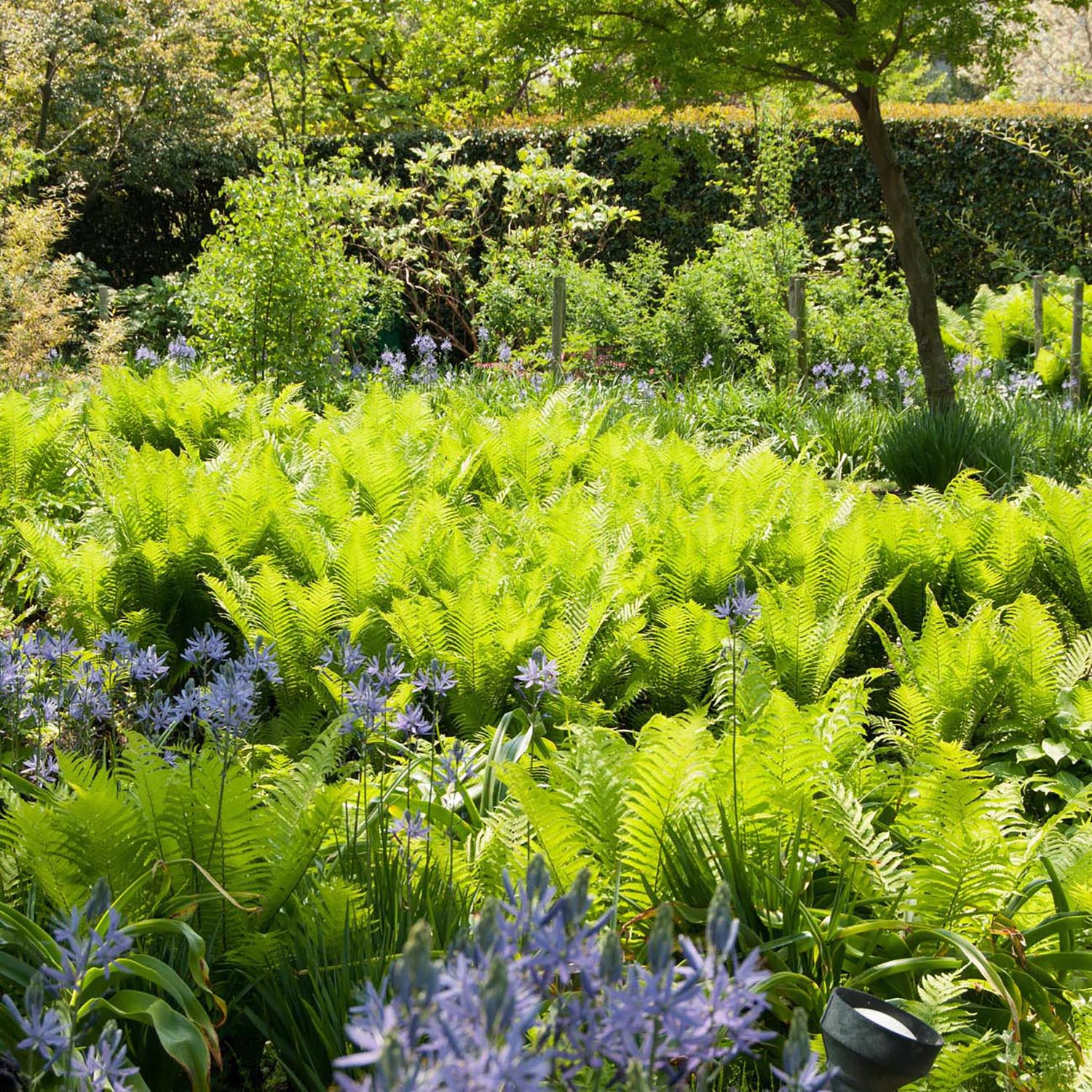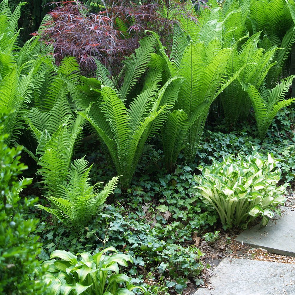 Гигантска щраусова папрат (Matteuccia Struthiopteris), предпочита сянка, студоустойчива