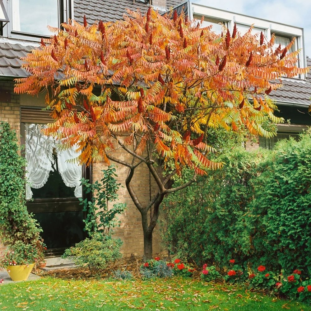 Оцетно дърво Rhus typhina, известно и като „еленов сумак“, впечатлява с естествената си красота и издръжливост. Родом от източна Северна Америка, този вид е особено ценен в озеленяването заради бързия си растеж и декоративния ефект.