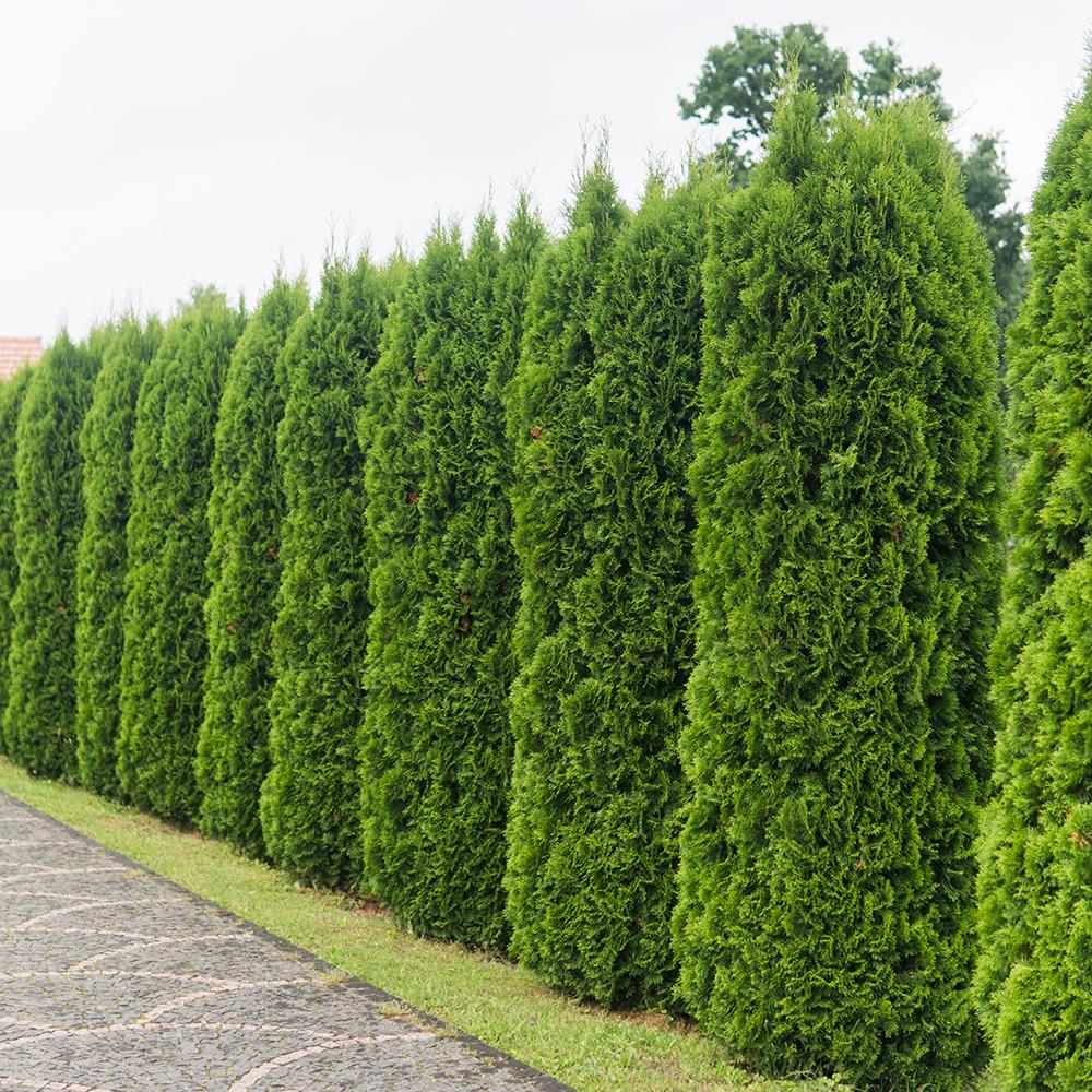 Tuia Occidentalis Smarald, gard viu vesnic verde, forma conica naturala, bariera impotriva vantului