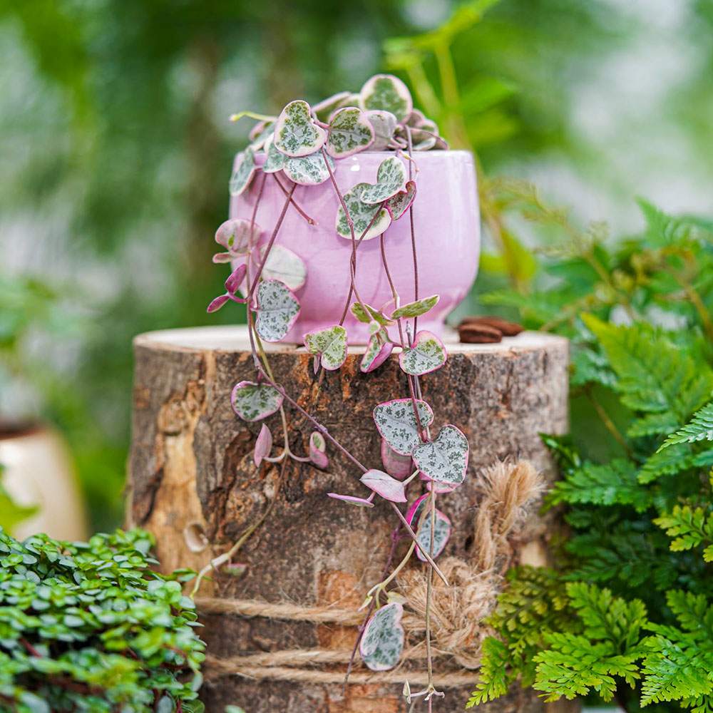 Ceropegia woodii 'Variegata', известна още като „Верига от сърца Вариегата“, е забележително красиво и лесно за отглеждане стайно растение, подходящо както за начинаещи, така и за колекционери. Със своите деликатни, пъстри листа с формата на сърца, които елегантно висят от тънките стъбла, това растение добавя нотка изисканост и елегантност във всяко помещение.