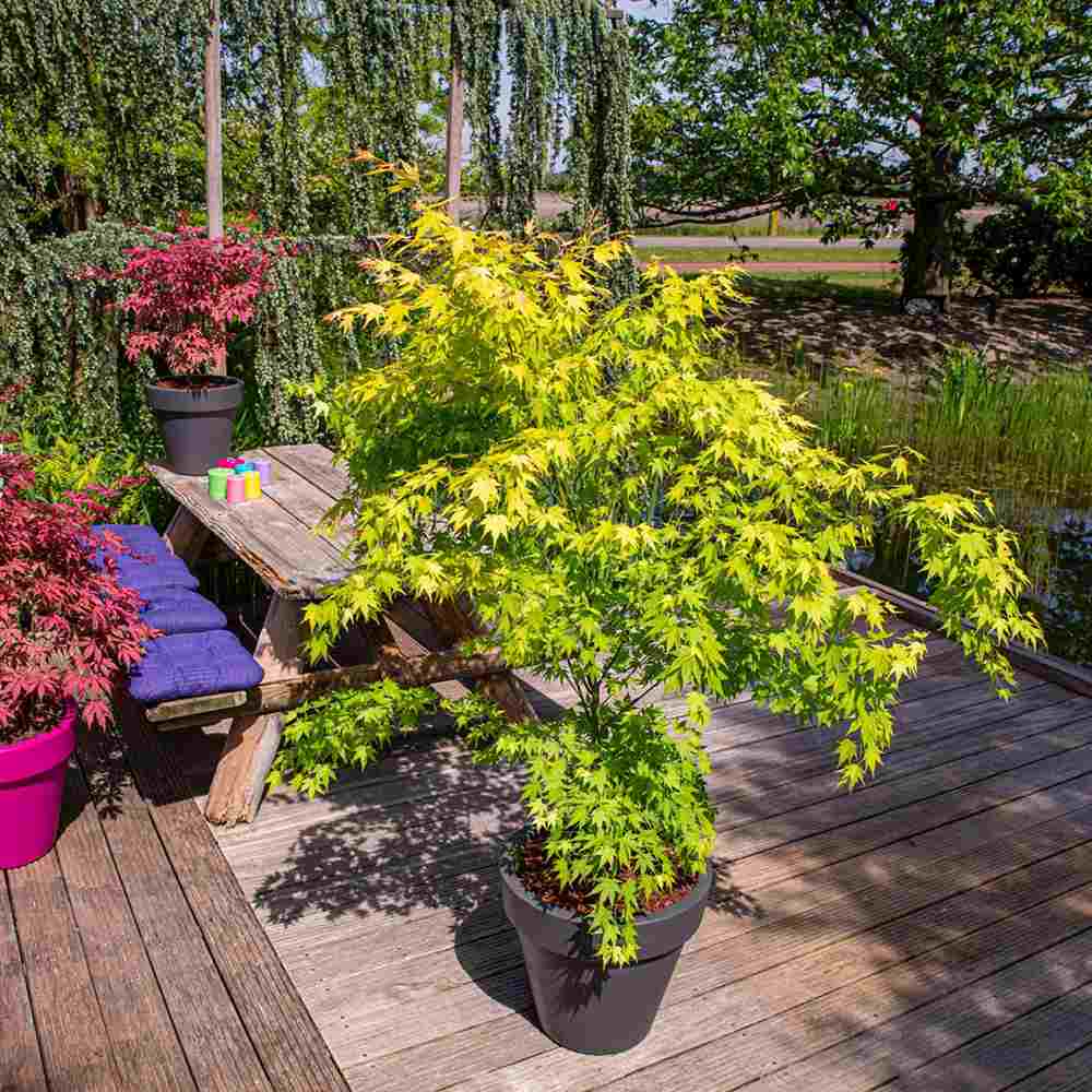Японски клен златен Orange Dream, жълта зеленина пролет и лято, оранжево през есента, идеален за сянка