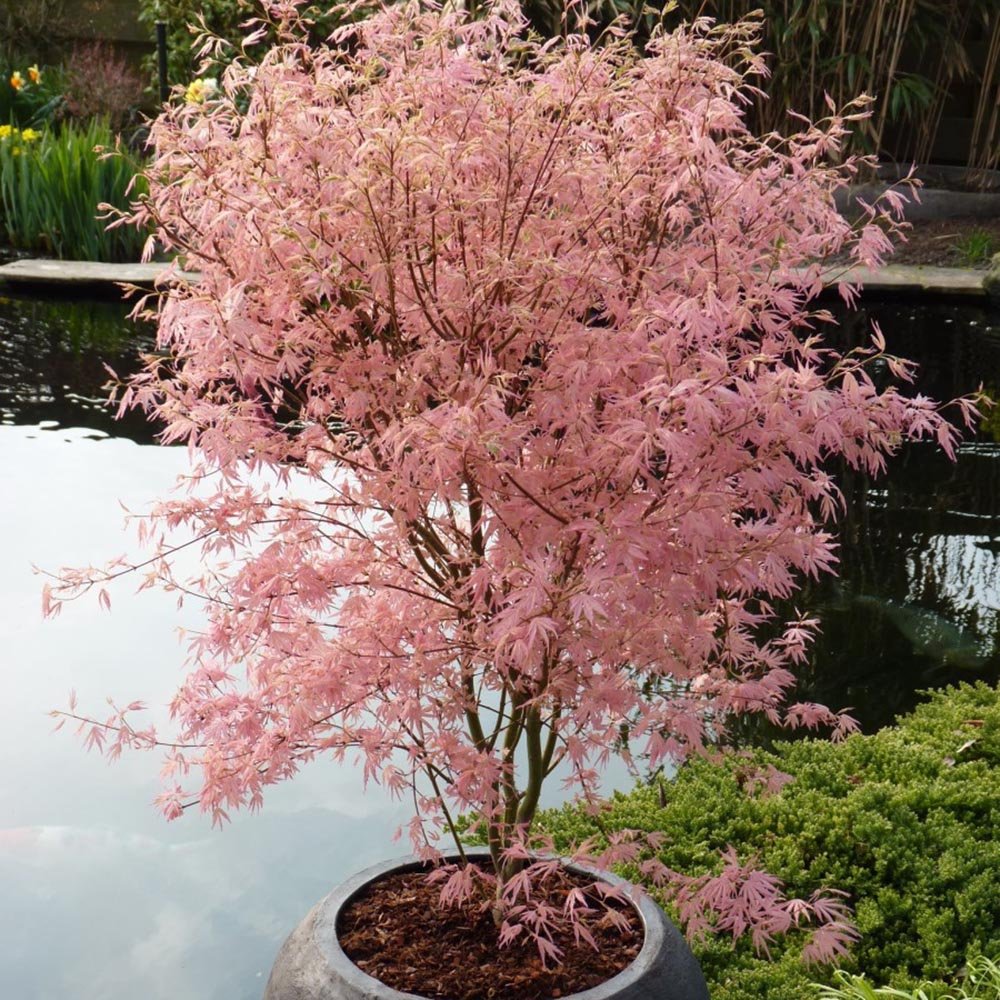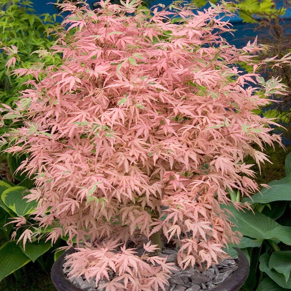 Японски клен джудже розов Taylor, с розово-сьомонова листна маса, декоративен, за саксия или малка градина