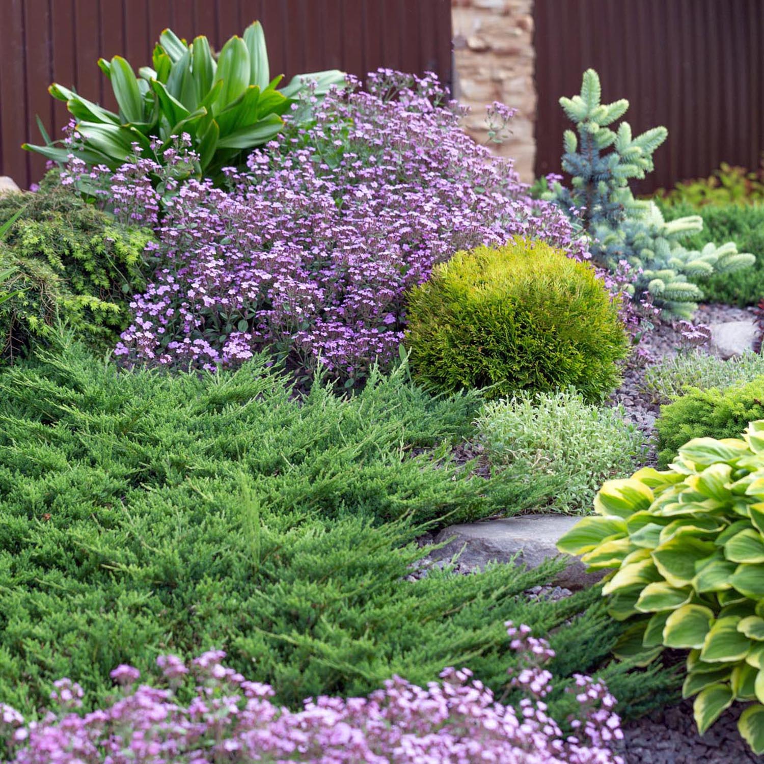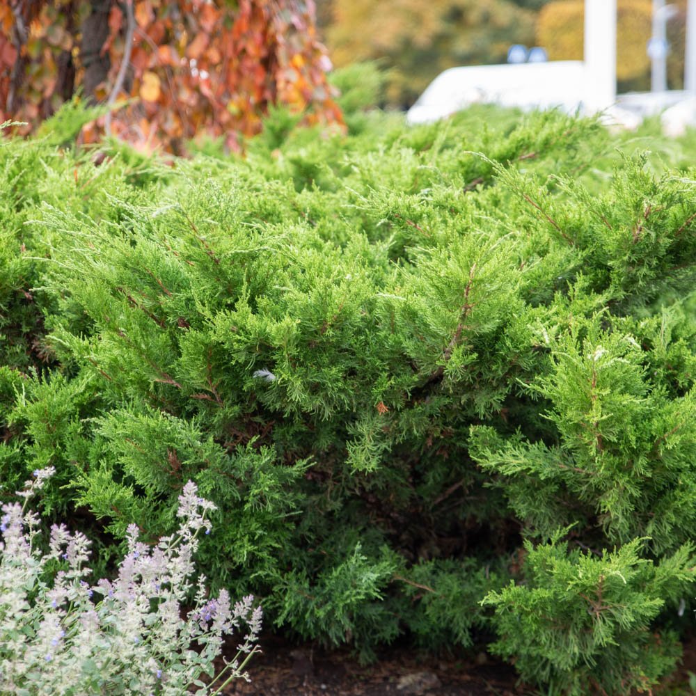 Хвойна Mint Julep, декоративен тъмнозелен иглолистен, стелещ се, устойчив на суша и студ, подходящ за склонове и бордюри